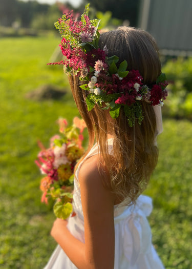 Let us help draft a harmonious blend of vibrant red roses and delicate purple flowers, or fluffy lavender lisianthus and textural celosia to complement your big day. we will expertly arrange a piece to create a striking visual impact in coordination with your color palette.